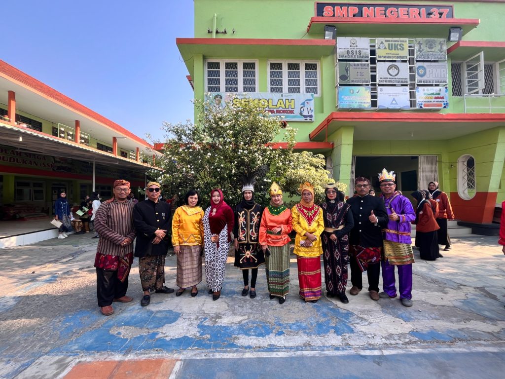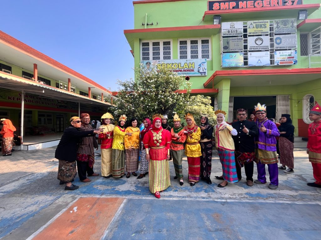 Seluruh Warga SMPN 37 Surabaya memakai baju adat dalam rangka memperingati Hari sumpah pemuda Ke96